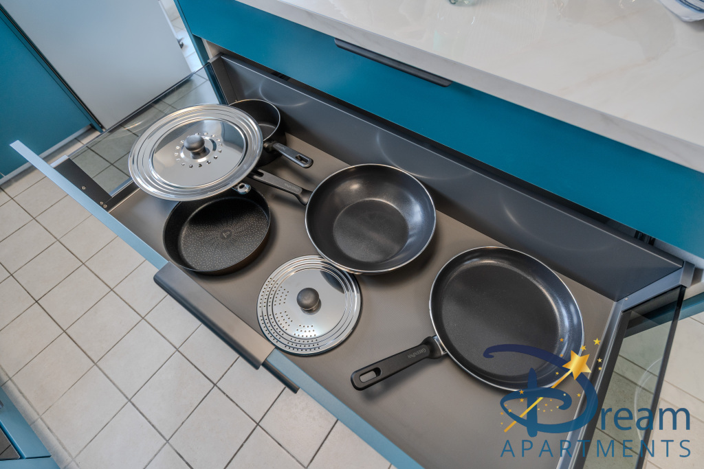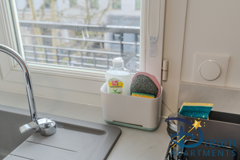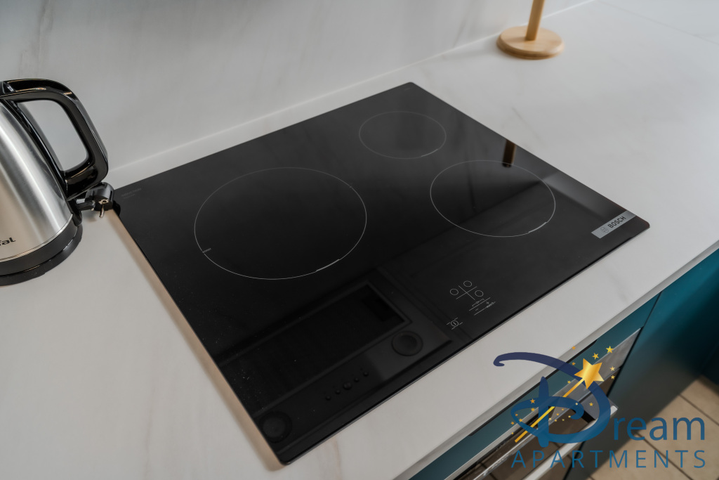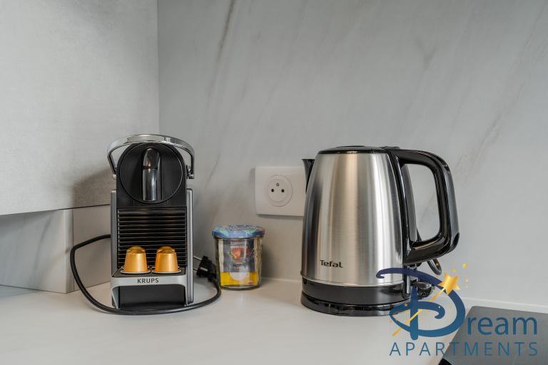 L’appartement se compose d’un séjour lumineux et convivial, soigneusement aménagé, avec un espace salon confortable équipé d’un canapé convertible de qualité, d’une télévision et d’un coin repas agréable. La cuisine ouverte, entièrement équipée (réfrigérateur, plaques de cuisson, four, micro-ondes, cafetière, vaisselle et ustensiles), vous permettra de préparer vos repas comme à la maison.