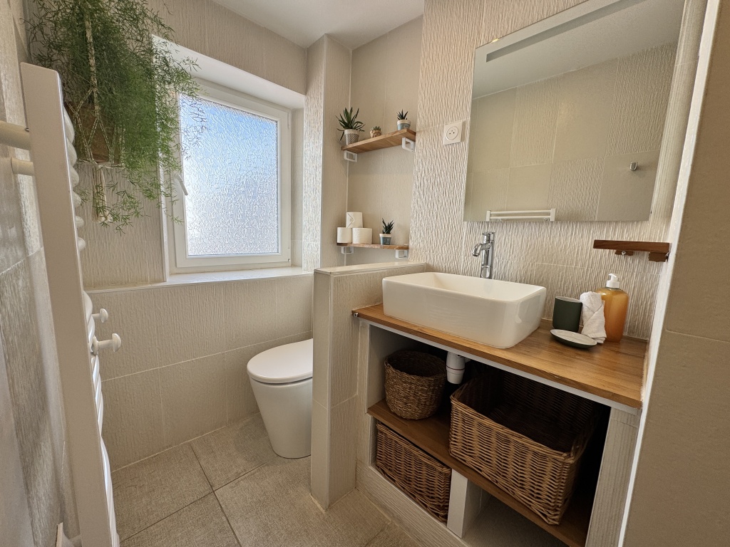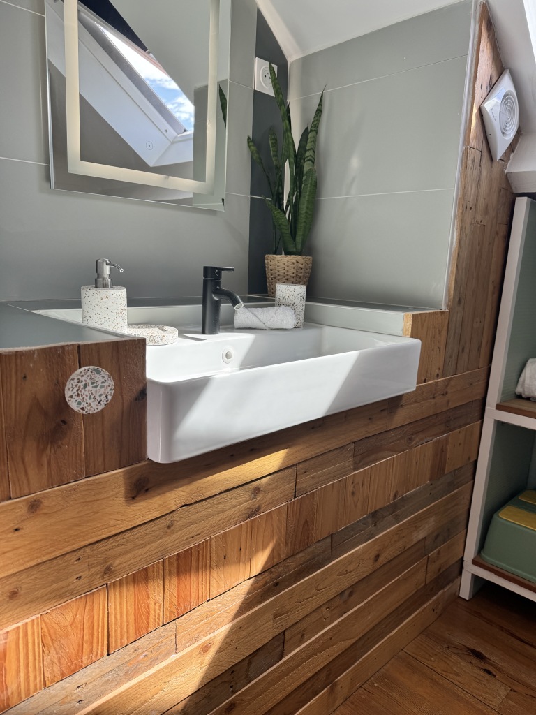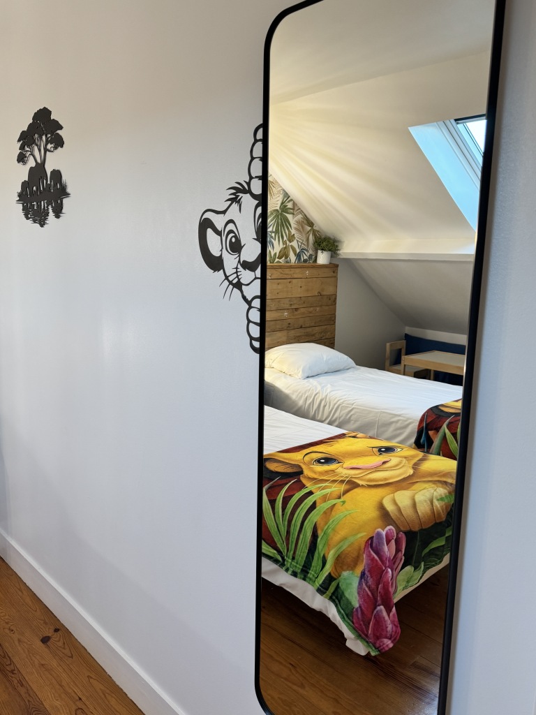 Cette maison briarde, située dans un bâtiment datant de 1900, offre un cadre confortable et fonctionnel, avec plus d’espace et d’intimité qu’une chambre d’hôtel.